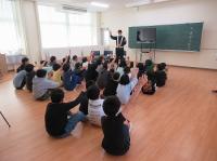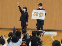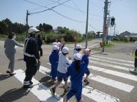 4月26日(金)の3限目に珠洲警察署から4人の署員の方に来ていただいて、交通安全教室と防犯教室を行いました。1・2年生は、学校近くの押しボタン信号までの道路を歩き、正しい歩き方や横断歩道の渡り方を学びました。3~6年生は、今年は地震の影響で、自転車には乗らずに、DVDで安全な自転車の乗り方について学習しました。どの学年も警察署員の方のお話にしっかり耳を傾けて、これからも「自分の命は自分で守る」という思いを持ちました。