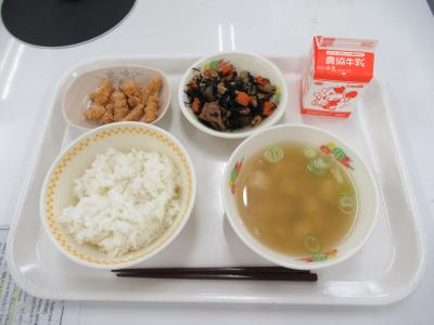 ☆1月24日(月)今日の献立「かしわめし だご汁 ひじきの炒り煮 牛乳」