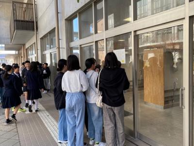 生徒が考案したメニューの「さつまいもドーナツ」と「さつまいもスティック」の2つの商品を本日調理し、袋詰めや陳列なども生徒が行いました。終礼後、生徒が作ったお金を使って、多くの教職員が新化学級に買いものに行きました。「いらっしゃいませ~」「〇〇円になります」「おつりは○○円です」としっかり対応できていましたよ。