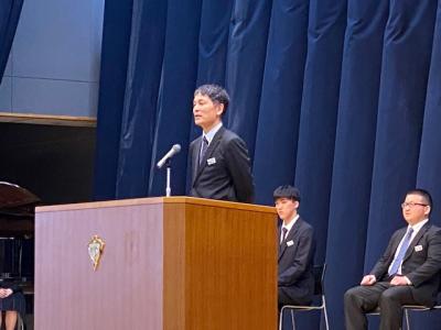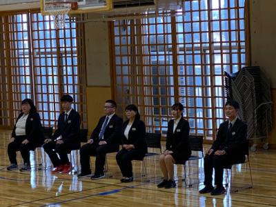 表彰伝達からスタートし、校長先生のお話、生活のお話、生徒会長からのお話と進んでいきました。
