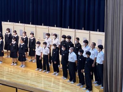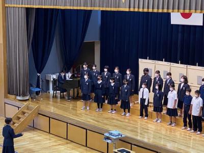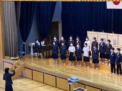 スタートの1年生は緊張したと思いますが、1番の4組が良いスタートを切ってくれたことで、どの学級も練習通りの歌声を披露できたと思います。また、月曜日のリハーサルを終えて、ソロを入れたり、強弱を付けたりと素敵な歌声になっていました。