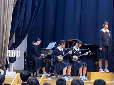 本校から出場した3年2組は、出だしから全員の歌声がバッチリ揃い、素晴らしい「島唄」を歌いあげてくれました。学校と違ったホールでの合唱は、生徒にとって大変気持ちよく歌うことができ、良い思い出となりました。指揮者、ピアノ伴奏者そして三線演奏の二人、曲紹介をしてくれた代表者、本当にお疲れ様でした!