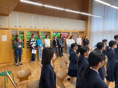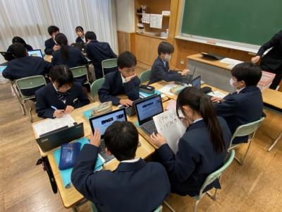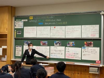 1年生の社会の授業では、金沢教育事務所の指導主事をお迎えし研究授業が行われました。「アフリカ州には、どのような支援が必要か」を課題に生徒は一生懸命考えていました。指導主事の先生からは「生徒の表情が学びに向かう笑顔がいっぱいの授業であった」「頭をフル回転して50分頑張っていた」と高い評価を頂きました。
