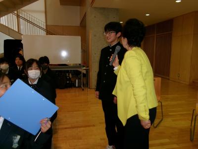 1、2年生の合唱コンクール後に、1年生の総合の発表、石川県のビブリオバトル大会に出場する2年生の発表がありました。