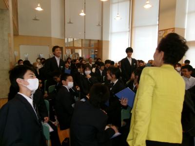 1年生の教育講座として、フリーアナウンサーの横田幸子先生を講師として「言葉のチカラを知ろう~本当の友達になろう~」と題して講演をして頂きました。