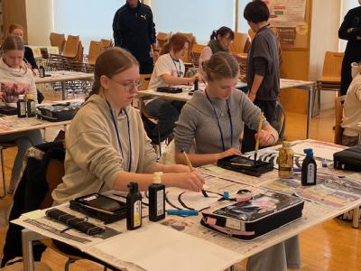 メスキルヒ市の生徒の本日のメニューは、習字と柔道の体験です。