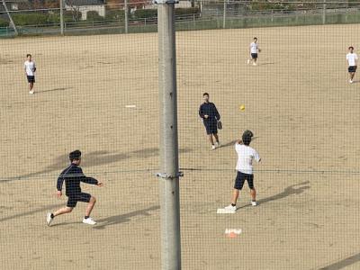 気温が下がりだし、生徒玄関前のヤマボウシの葉が赤や黄色に色づき始めました。吹く風は冬の寒さですが、3年生は元気にグラウンドでソフトボールを行っていました。受験勉強中心の3年生は、体育の授業を楽しみにしており「集合するぞ~」「切り換え早くしよ~」など自分達で声を掛け合う姿が見られました。