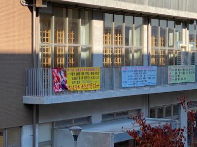11月22日に長野市で行われる北信越駅伝大会に出場する選手を激励する応援幕が完成しました。