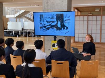 生徒は、小学校の教科書に出て来た「宮沢賢治」や「夏目漱石」「芥川龍之介」などの作者の名前をすぐ出していましたが、今話題の「小泉八雲」や金沢の文豪である3人の名前は「誰それ~」「石川県の人なんや~」と声が出ていました。