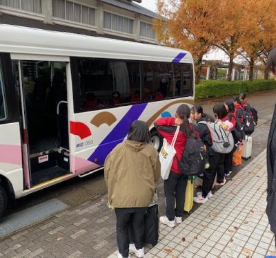 「北信越駅伝大会」に出場する本校陸上競技部女子の選手が長野県へ向けて出発しました。体育の授業をしていた1年生が見送りをしてくれました。