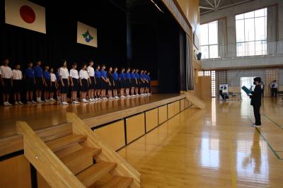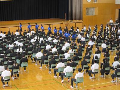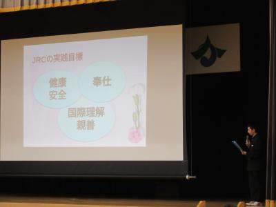 本日6限に全校集会が行われました。表彰伝達、校長先生のお話、生活、学習のお話、生徒会、JRC登録式と続きました。