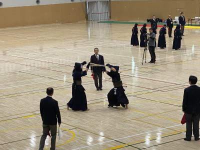 午前中に行われました女子個人戦で、星野選手が準優勝に輝き全国大会出場を決めました。この後、男子団体戦が始まります。