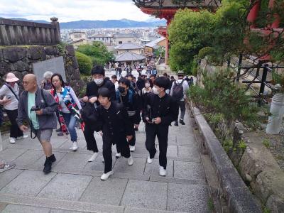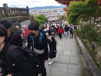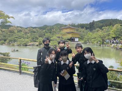 京都は最高気温が18度、寒くもなく暑くもなく快適な一日でした。市内はどこも混雑はなく、ほぼ計画通りに見学地を回ることができました。このあと、宿泊先の神戸に向かいます。生徒は元気いっぱいです。