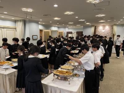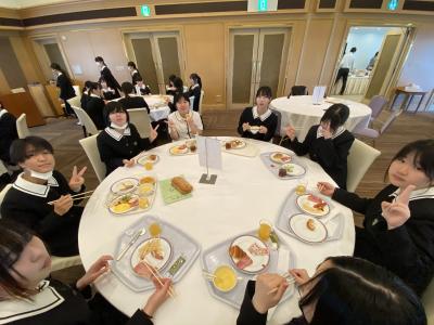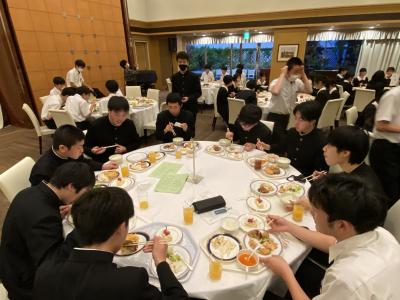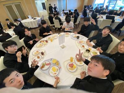 修学旅行2日目の朝です。6時半起床、7時から朝食です。眠そうな生徒も何人かいますが、元気な様子です。