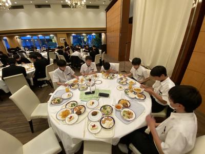 ホテルプラザ神戸に到着しました。埋立地に建てられたホテルで、とてもオシャレなホテルです。さっそく夕飯をビュッフェ式で頂きました。飲み物も自由に飲むことができ、楽しく夕飯を頂くことができました。