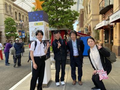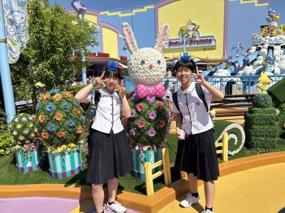 気温22度、快晴そして空気もカラッとしたとても過ごしやすい天候のなか、生徒は楽しんでいます。パーク内の混雑はほとんどない状況です。待ち時間が140分のアトラクションもありますが、昼食をとって戻って来てほしいなぁと思います。