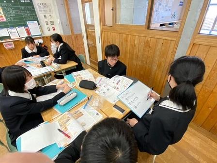 また、2年生の社会の授業では、「田沼意次と松平定信の政治の違いは何?」という課題で、グループで話合いを行っていました。「松平定信と言えば…質素倹約!」が出ていたグループもありました。
