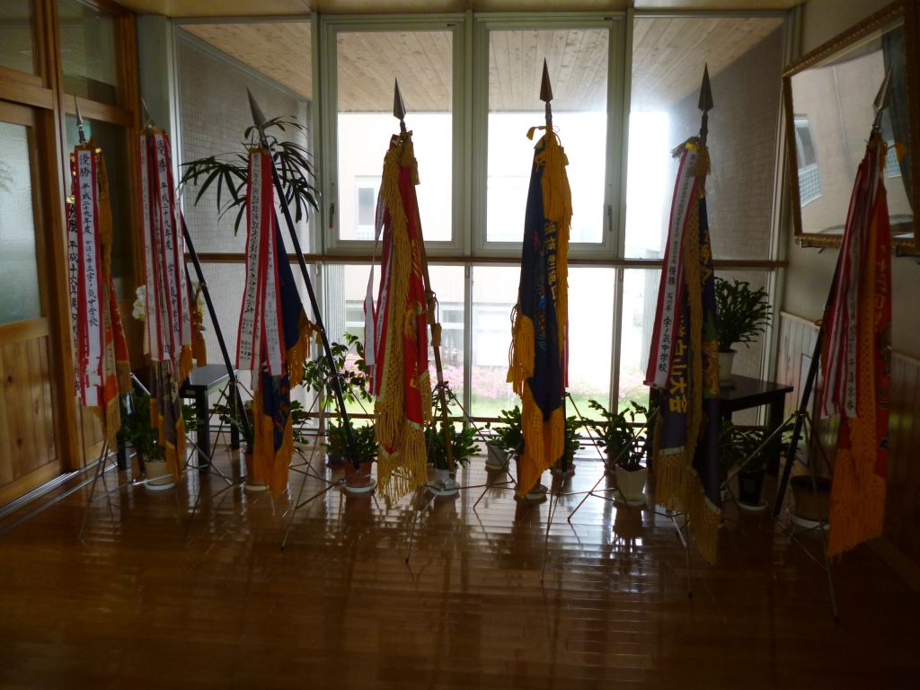 また、3年生がいた時に獲得した優勝旗(県体、北信越大会)を合わせると合計23本の優勝旗が職員室前にズラリと並んでいます。廊下の両側に並んだ優勝旗の間を歩き抜けるのはとても気分の良いものです。