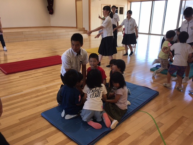 今日は3年3組の生徒たちが新化こども園を訪問させていただきました。いっしょに遊んだり、ダンスしたり、楽しい時間を過ごすことができました。小さい子たちも懐いてくれたようですね。
