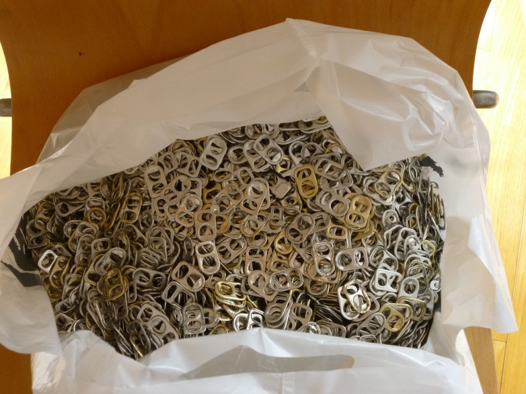 今週月曜日からは、缶ジュースなどのプルタブを回収しています。プルタブは160万個、アルミ資源800kgでアルミ製車イス1台となります。