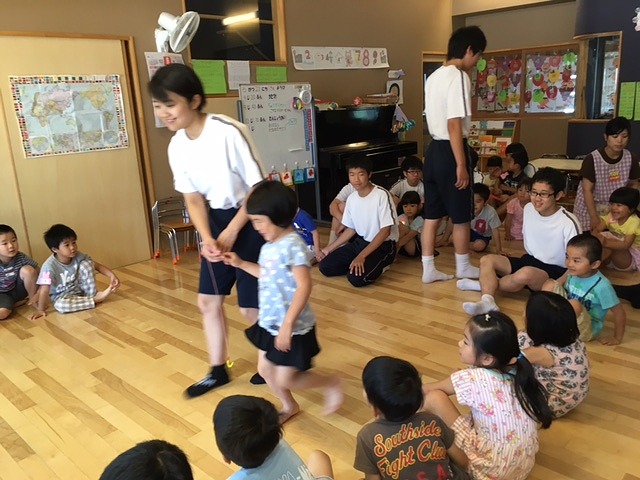 今日は3年4組が幼児とのふれあい体験学習に行きました。今日も、たくさんの笑顔が見られました。幼い子たちの無邪気さとかわいらしさには、とても心がホッとしますね。