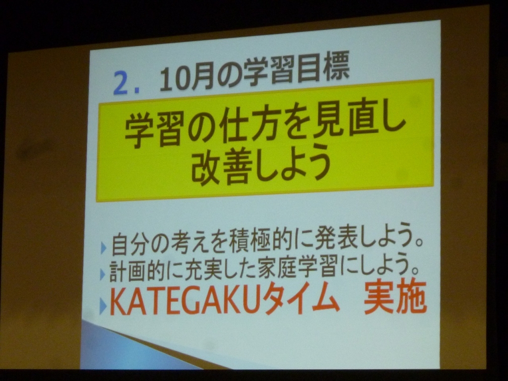 運動会や運動部の新人大会が終わりました。宇ノ気中では、今こそ学習を頑張る季節にしようと言われています。授業はもちろんのこと、家庭学習を充実させ、来週の2学期中間テストに向けて集中して学習に取り組みましょう。
