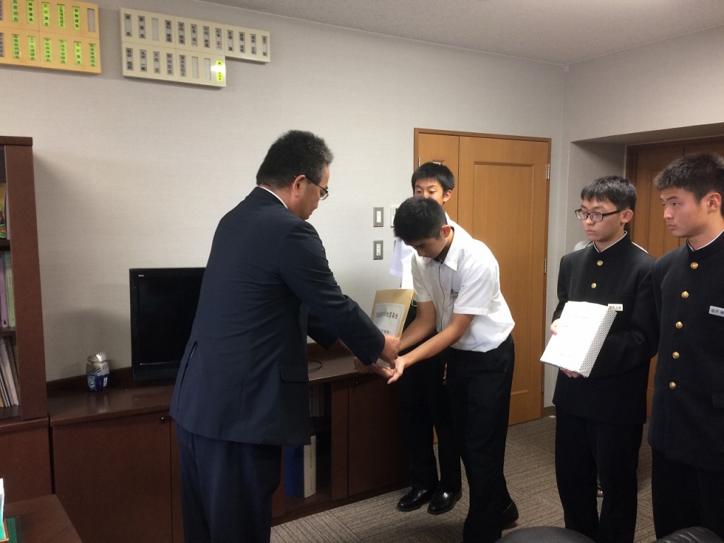後期の生徒会役員のみなさんに校長先生から任命状が手渡されました。