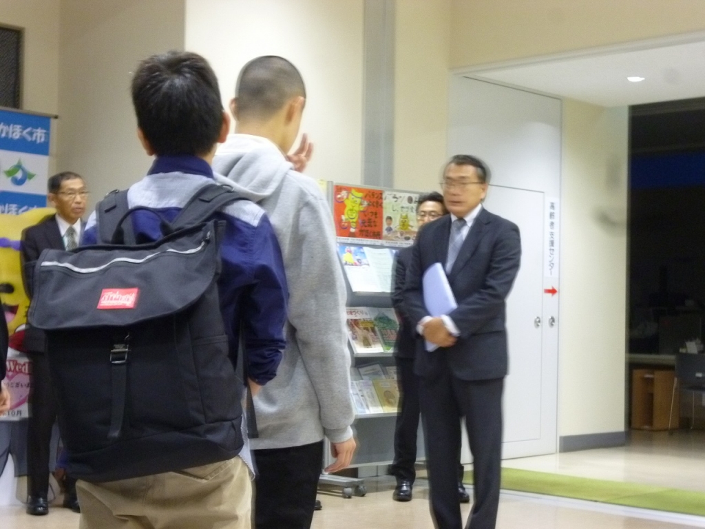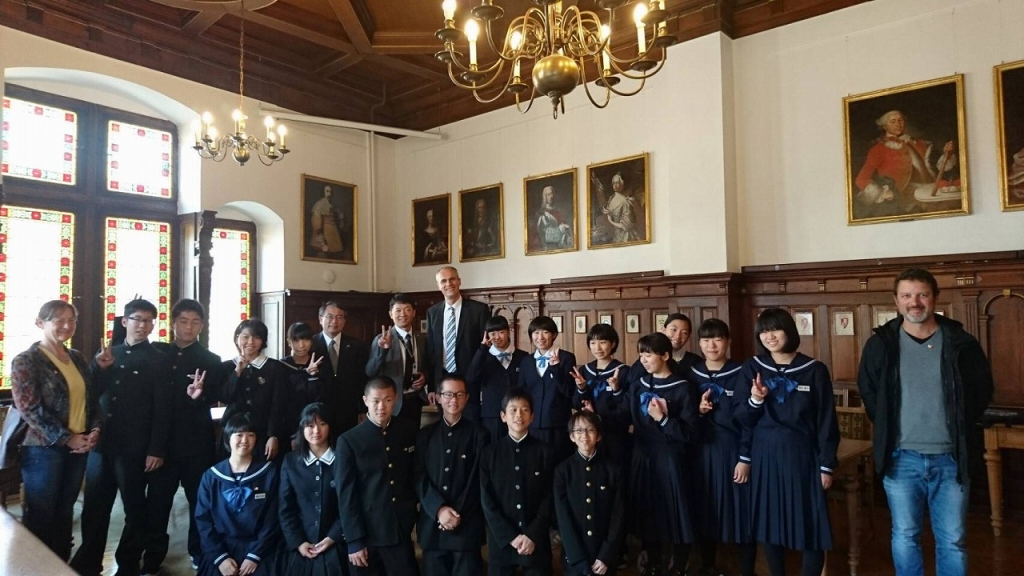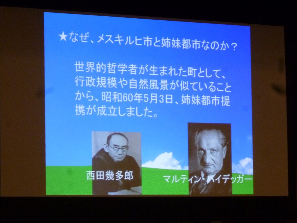 山本校長先生からは、先月ドイツのメスキルヒ市を訪問した時のお話がありました。ドイツにはギムナジウム(進学向けの中等教育校)とレアルシューレ(実科学校)、ハウプトシューレ(基幹学校)があり、10歳で学校を選択しなければいけないこと。そしてドイツの生徒は、努力しないと進級できない制度になっているので、ドイツの生徒は目的を持って自主的に、進んで勉強する生徒が多く、「~したいという強い信念を持っている」そうです。そこが日本人との違いだと教えていただきました。宇ノ気中生徒にも、将来の目標や夢を持って勉学や学校生活に取り組んでほしいという願いを語られました。