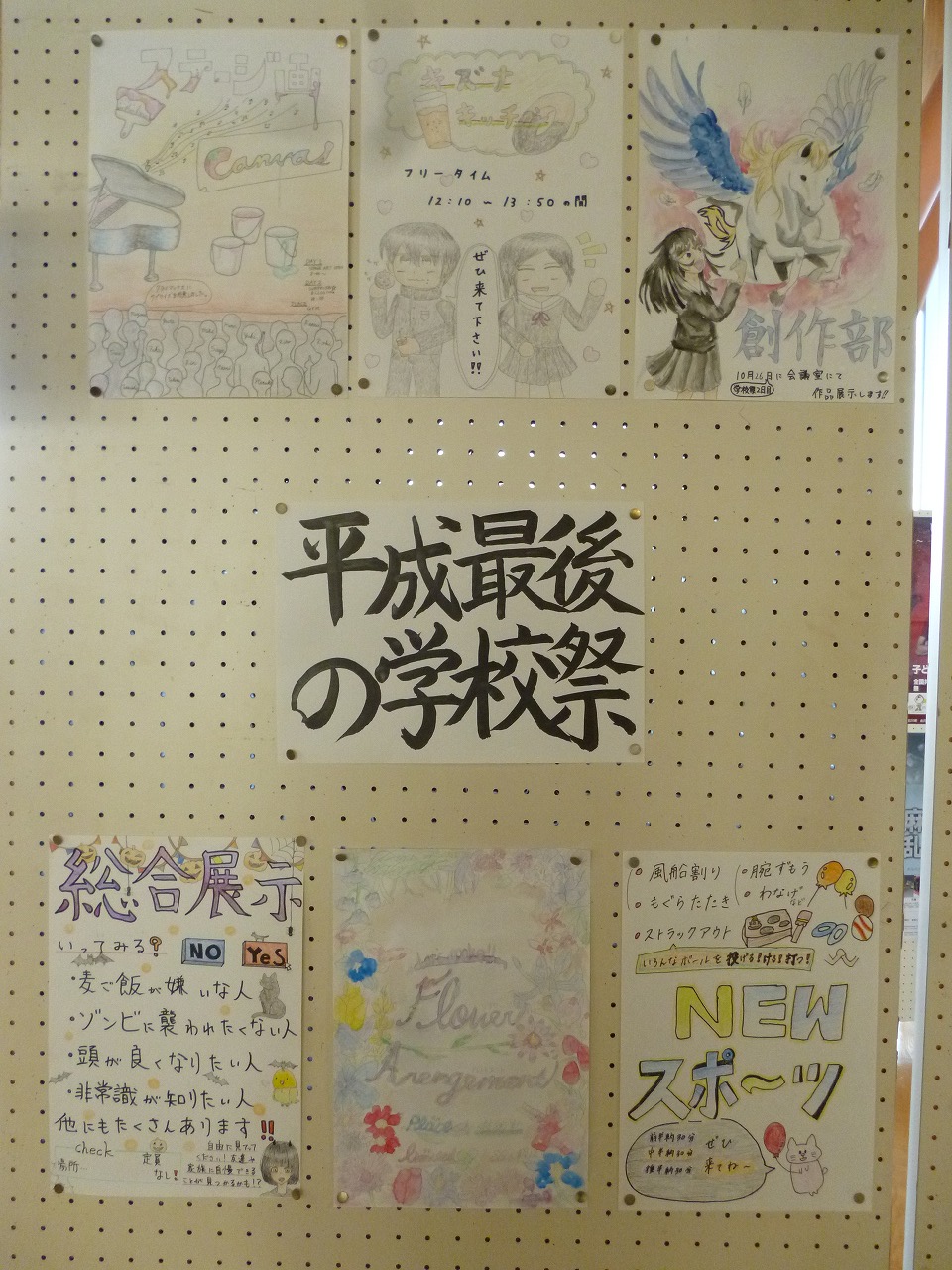 これは生徒玄関に飾られている「学校祭スローガン」です。
