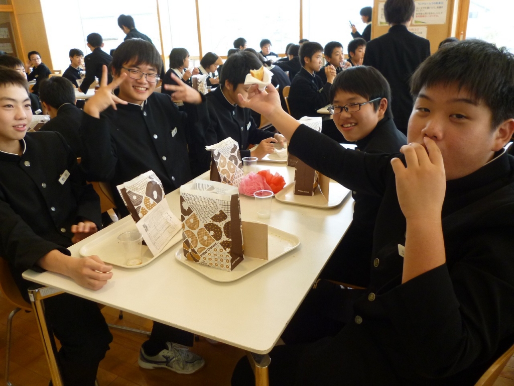 改めて、「食」という漢字は「人」に「良い」と書きますね。中学生のみなさん、毎日の給食、お家での食事に感謝し、もりもり食べて丈夫な体、元気な心を身に付けましょう。