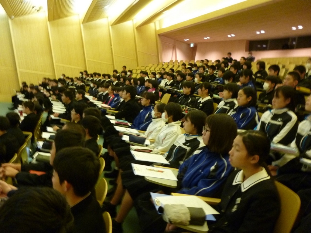 今日聴いたお話を参考にし、自分の進路実現のために、今後ますます受験勉強に励んでくれることを期待します。職員室に質問に来る3年生も多くなってきました。どしどし質問に来てくれると先生たちも対応しますよ。応援していますので、頑張ってほしいと思います。