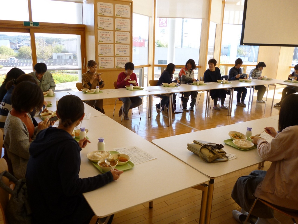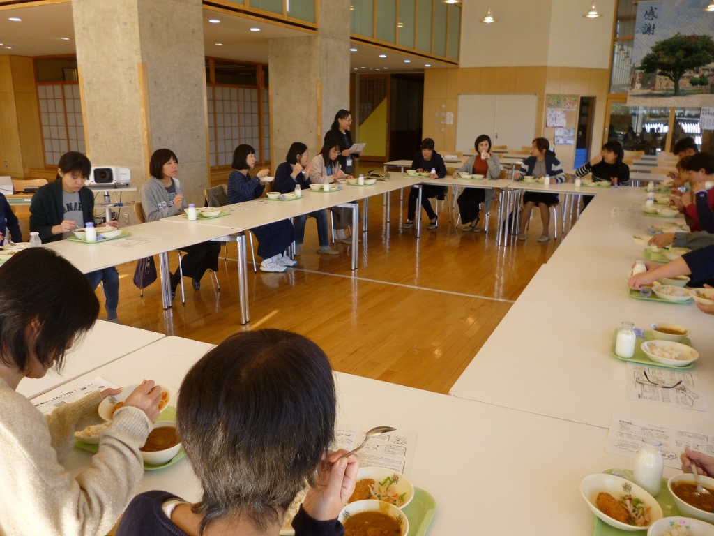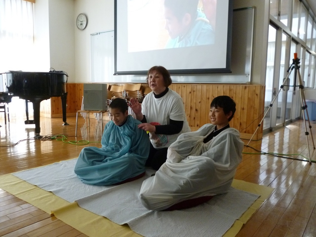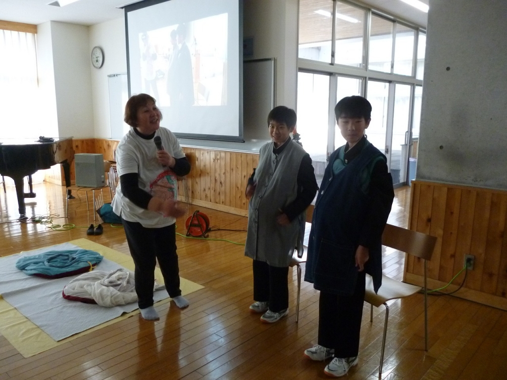 最後に「食育」ということで、河北市の食育調査隊が作成した学校給食に関するDVDを見て、改めて食事の大切さを学んでいただきました。
