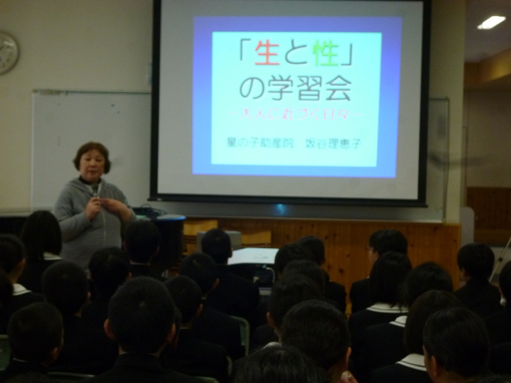 今日は午後、1年生が思春期講座を実施しました。今日は講師として、星の子助産院の坂谷 理恵子先生にお越しいただき、命の尊さ、個人の存在の大切さを改めて強く教えていただきました。自分を産んでくれた母親に対する感謝を深めることができました。