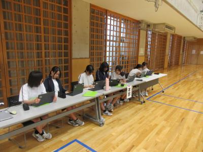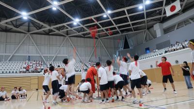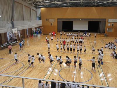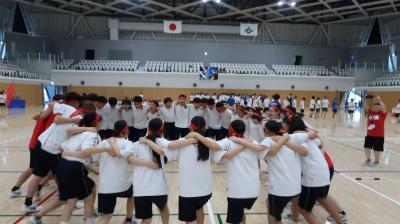 本日は中学校の体育館で明日に控えた運動会の予行練習を行っています。係の生徒や選手の動きを確認する目的です。実際の競技は時間調整しながら練習しましたが、本番さながらの熱の入りようで、大きな歓声が体育館に響き渡っていました。