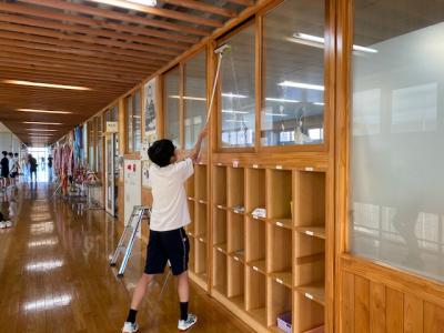 本日、PTA生徒活動部主催による「親子清掃活動」が、約150名の親子が参加し実施されました。日常の清掃活動ではなかなかできない高い場所や特に汚れている窓などを保護者の皆さんに助けてもらいました。貴重なお休みに、多くの保護者の皆様に参加して頂き、本当にありがとうございました。