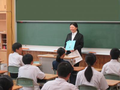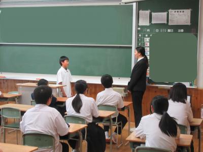 宮一先生の3週間の教育実習期間が本日で終了しました。宮一先生には、担当の授業や担当の学級の道徳や学活など、生徒とともに活動をして頂きました。