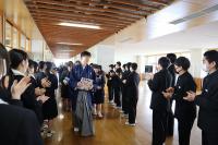 2年生の竹津さんが送辞で、「先輩方のおかげで、今の自分がある。感謝してもしきれない。この後は自分達がしっかり頑張ります!」と素直な気持ちを3年生に送りました。答辞では、本田さんが、この3年間を「3つのまさか」の出来事で振り返り、先生方、保護者、後輩達に感謝の気持ちを伝えました。竹津さん、本田さん、本当にお疲れ様でした!