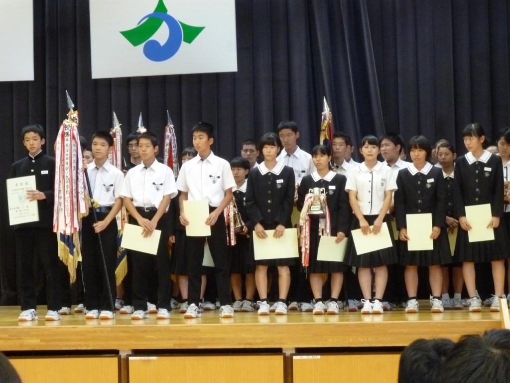 全校集会では表彰伝達があり、9月にあった新人大会等の章典を披露しました。とても多くの部活が優秀な成績を収めました。