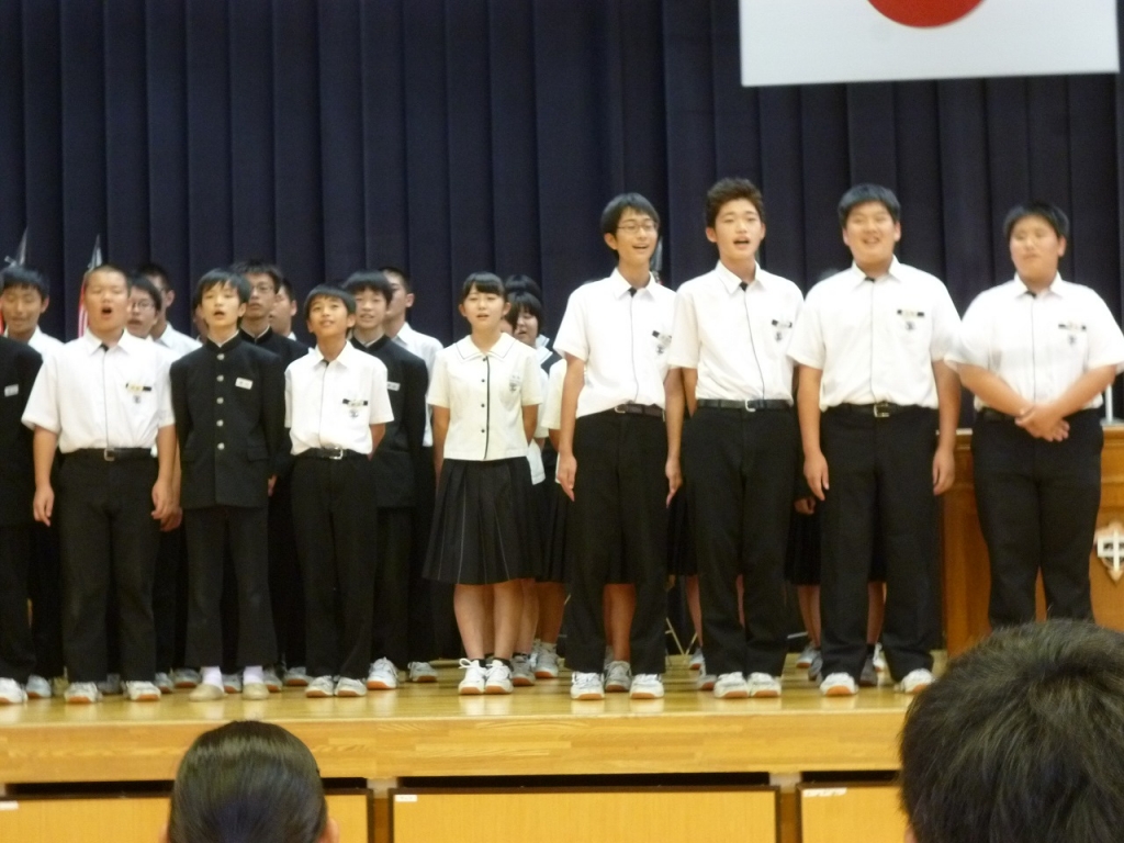 たくさんの2年生が「校歌うたい隊」に参加し、堂々と校歌を歌っています。