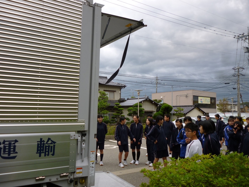 そのため、今日は朝6:30から荷物をトラックに積み込み、7:00に出発式を始めました。最初に室井教頭先生から吹奏楽部に向けた激励、次に部長の相川真子さんから見送りのお礼と大会に向けた意気込み、最後に顧問の酒道先生から大会に向け、部員と保護者の方々に決意を述べました。顧問の決意を聞き、部員の表情も引き締まったように見えました。