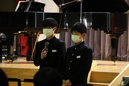 1,2年生の代表から3年生へのメッセージを送り、3年生から1,2年生へのメッセージを送っていました。