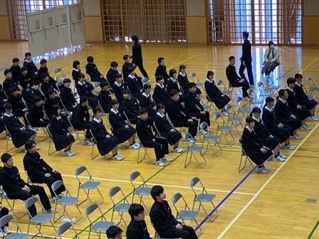 生徒会長からは、「今年度の残りの時間についても、ベル学や挨拶などしっかり取り組んでほしい。3年生は下級生のお手本として有終の美を飾ってほしい」と最後の挨拶を述べました。