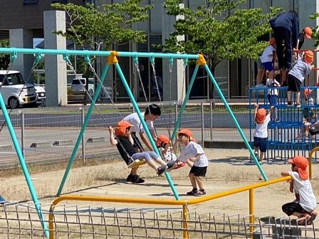 3年生の家庭科の授業の一環として、本日3年1組が幼児(3歳~5歳児)とのふれ合い活動を目的に新化こども園にお邪魔しました。園児は、すっかり中学生に慣れており、待ってました~という表情で迎えてくれました。今日は外の遊具で遊んだり、かけっこをしたり、中学生がクタクタになっていました。