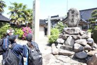 1年生は、「学校には円を取り入れたデザインがありますが、何個あるでしょう?」「西田幾多郎先生のあだ名は?」「宇野気駅から和倉温泉までの料金はいくら?」など問題を解きながら最終目的地の宇ノ気陸上競技場に到着しました。
