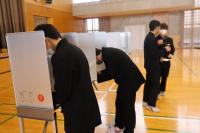 3年生が模擬選挙を体験しました。3、4年後には、選挙権を持てる年齢となりますね。この経験を生かして、投票しましよう。