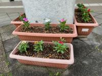溝口学校コーディネーターが、玄関前や屋上の花壇に、花の植え替えをし、学校全体が明るい雰囲気になっています。花や草木のある生活は、リラックス効果や、人を幸せな気持ちにしてくれる効果があるそうです。