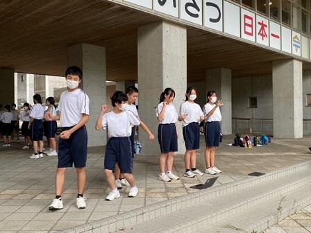3年生は、今週末から始まる運動会練習の予備練習として、ダンスや声出しそして整列の仕方などを確認しました。「声が聞こえんよ~」「もっと動作をはっきりとね」など、団リーダーの声が聞こえてきました。