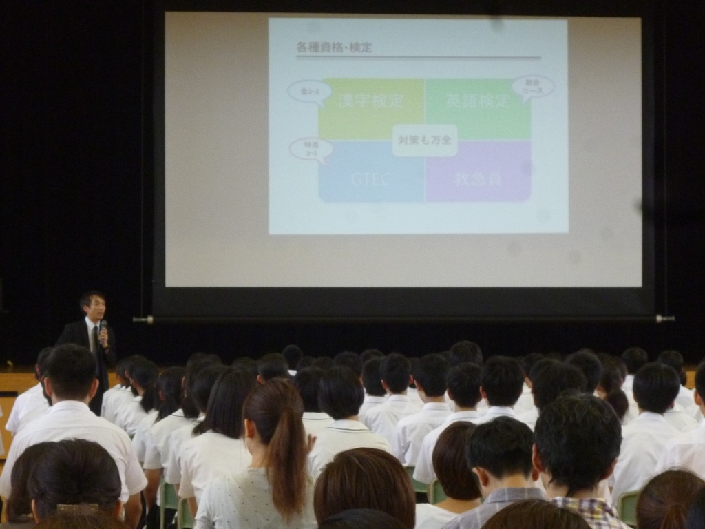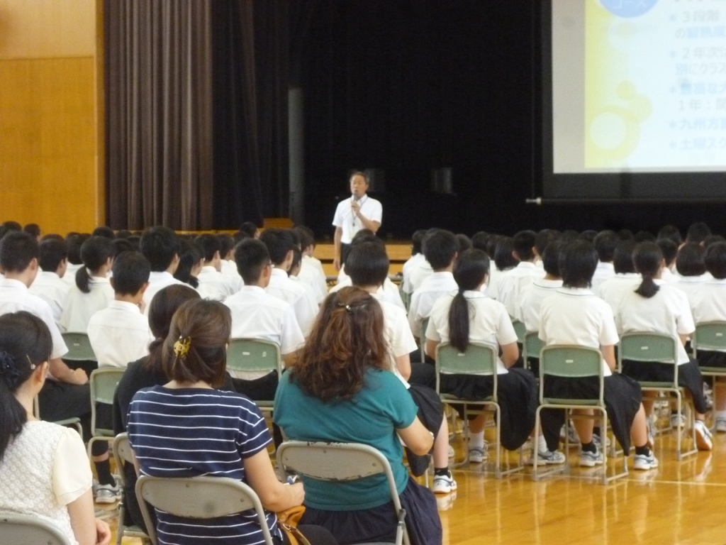 3年生は、自分の進路選択においてとても役に立つお話を聞くことがき、高校受験に対する意識を高めることができたと思います。夏休みになると、高校体験入学も始まります。早い段階で進路の目標を持ち、それに向かって一生懸命努力していくことが必要になります。そういう意味では、昨日の話はとても参考に、またとても刺激になったと思います。