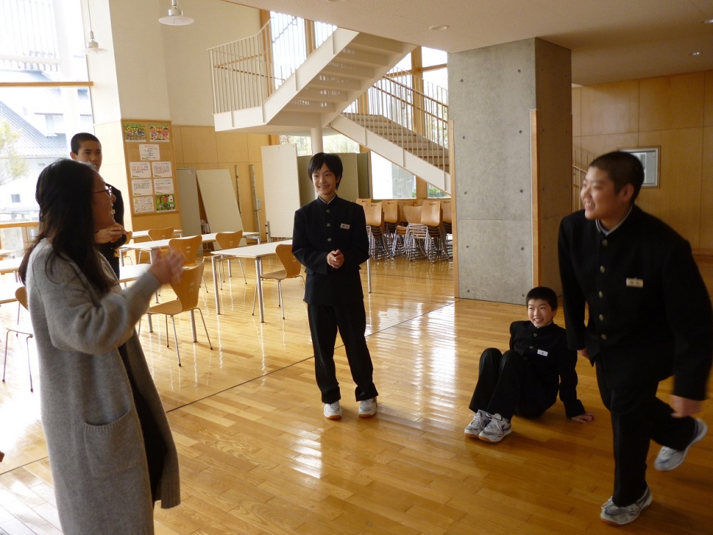 今日は昼休みにランチルームで、2回目のサリナ先生タイムがありました。今日は、男子剣道部の1・2年生が中心に、サリナ先生とアクティビティを楽しみました。とても盛り上がり、サリナ先生も楽しんでいました。こんなふうに、どんどん英語に興味を持ってくれる生徒が多くなってくれるとうれしいし、サリナ先生も喜ぶでしょう。