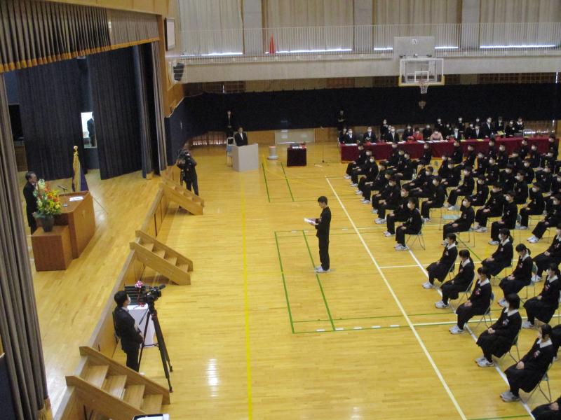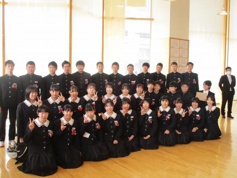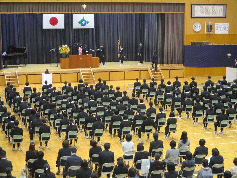 全員がマスクを着用し、時間短縮、様々な制限の中、3年間で立派に成長した姿を見せ、学び舎を巣立っていきました。